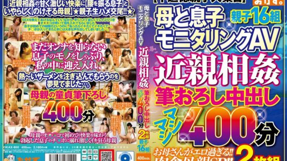 4時間以上作品母と息子モニタリングAV 近親相姦 筆おろし中出し マシマシ400分 2枚組 親子16組 パッケージ画像の女優イメージ 息子の成長に過干渉する母は、すべてを押し付けて教えたがる。それは初体験もしかり…。「初めてで失敗して恥をかいたら可哀そう…。」「相手の女の子に男らしいと思われたい…。」そんなそんな心配から「お母さんがSEXを教... 2025.06.014時間以上作品